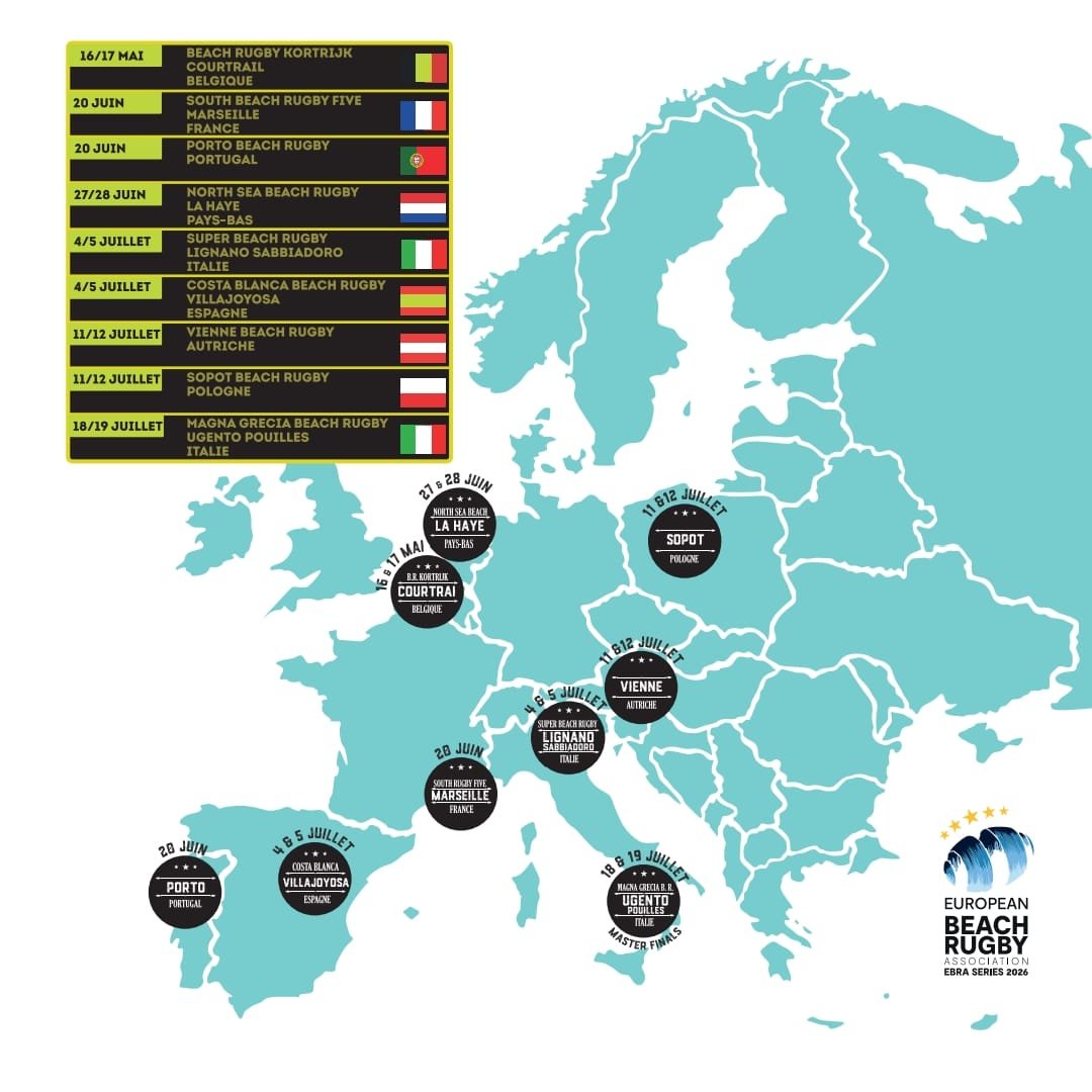 We started working in 2005 and since 2012 we organize every year the EBRA Series, a circuit of beach rugby’s tournaments in Europe.